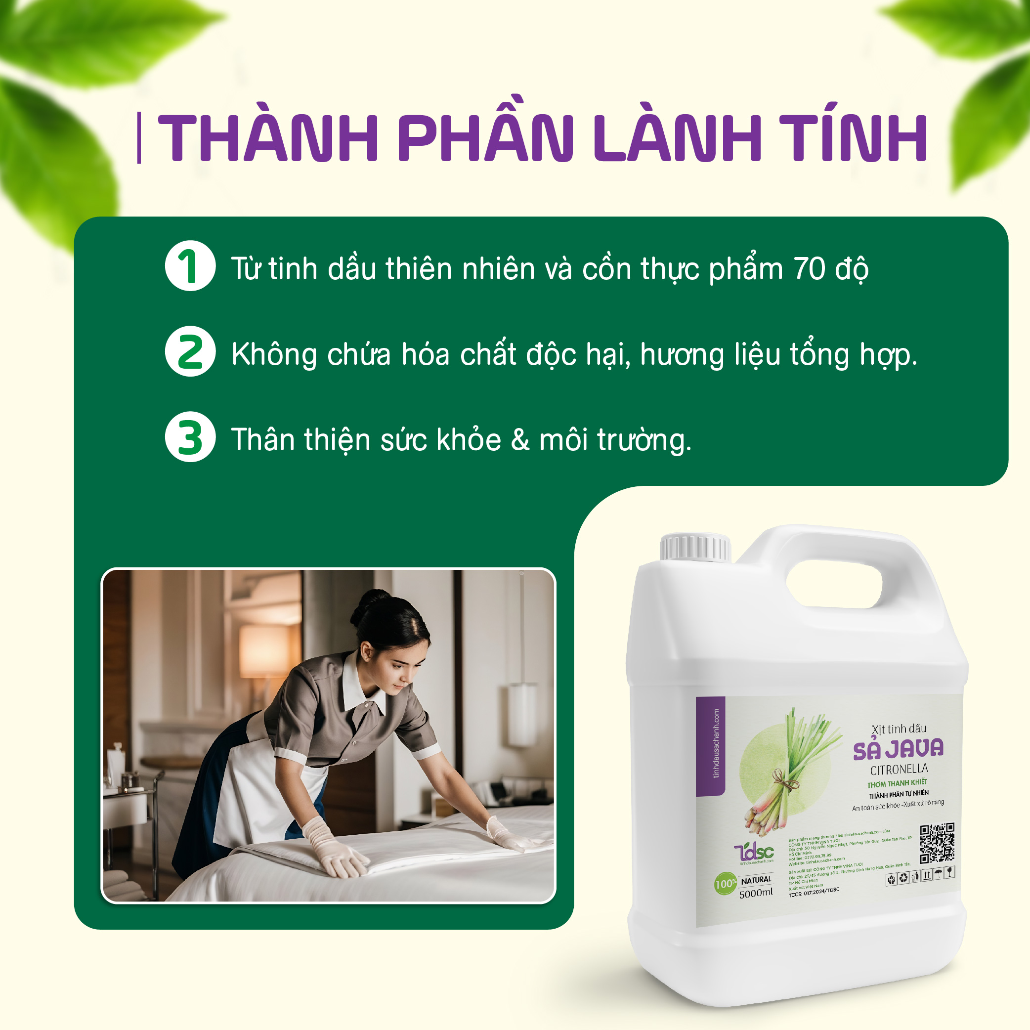 Can Xịt Thơm Tinh Dầu Nguyên Chất Vệ Sinh Đuổi Muỗi TINHDAUSACHANH 5000ml là giải pháp tuyệt vời cho không gian sống sạch sẽ, thơm mát và an toàn sức khỏe!